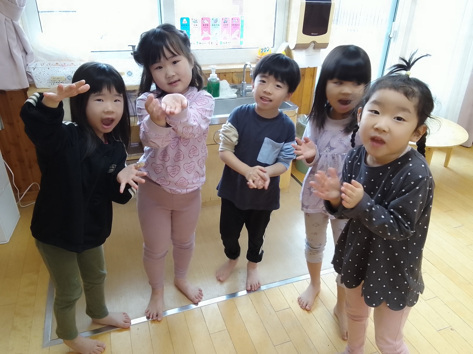 給食後は、タライに水を張り、足湯ごっこもしました✨