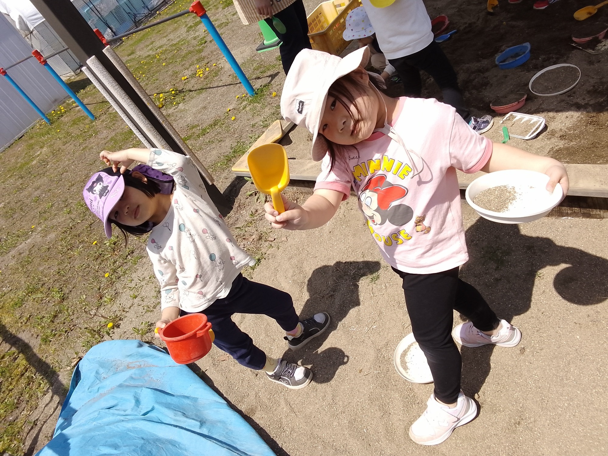 気温が低い日が続きますが、まだまだ戸外で遊んでいきたいと思います♪