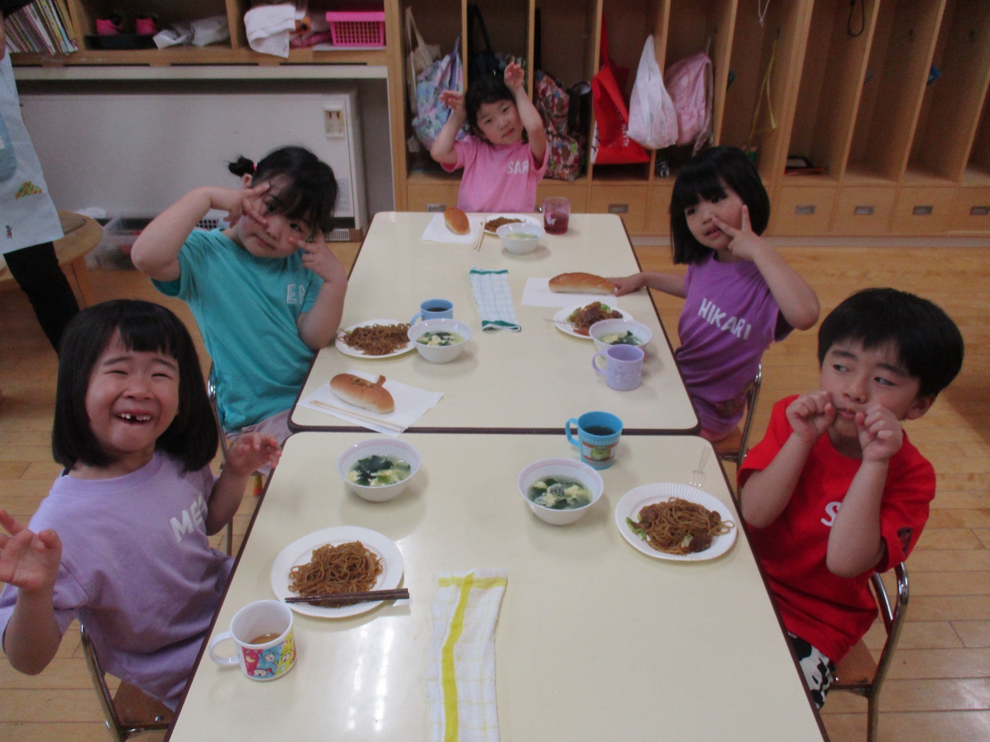 「お泊り会頑張ってね」ということで0才から4才のお友だちからお泊り会で作る焼きそばの材料をプレゼントしてもらいました☺