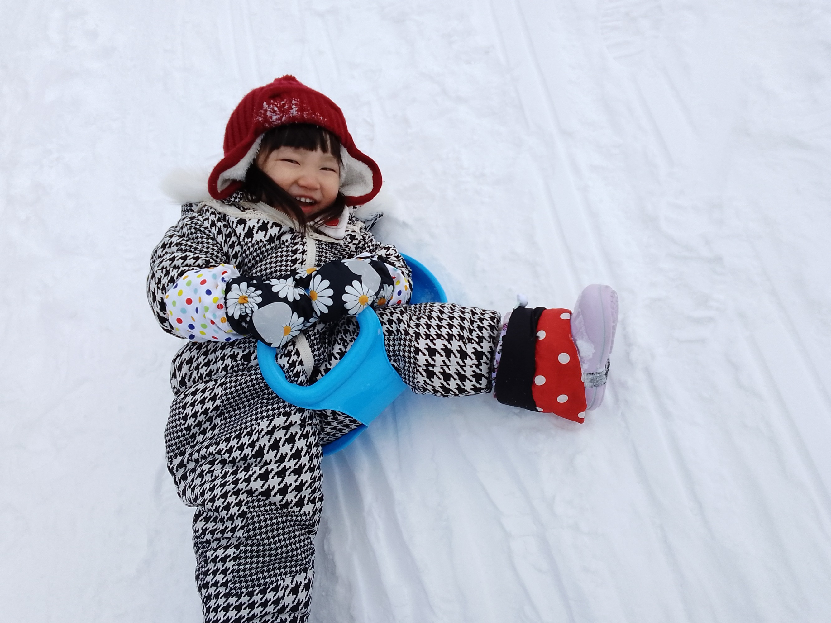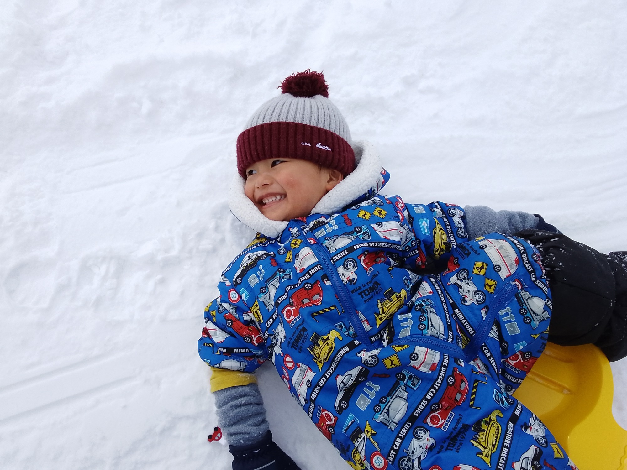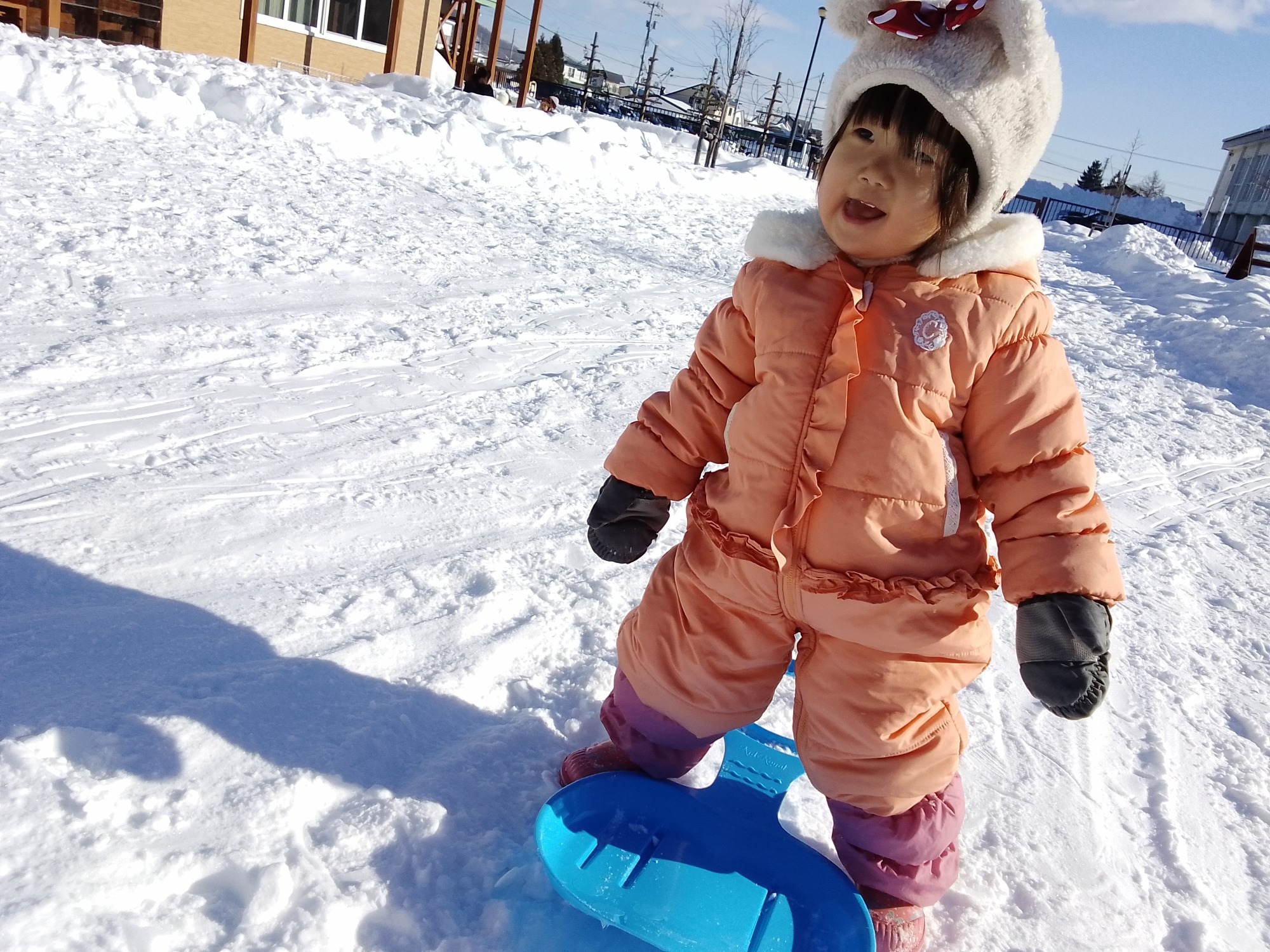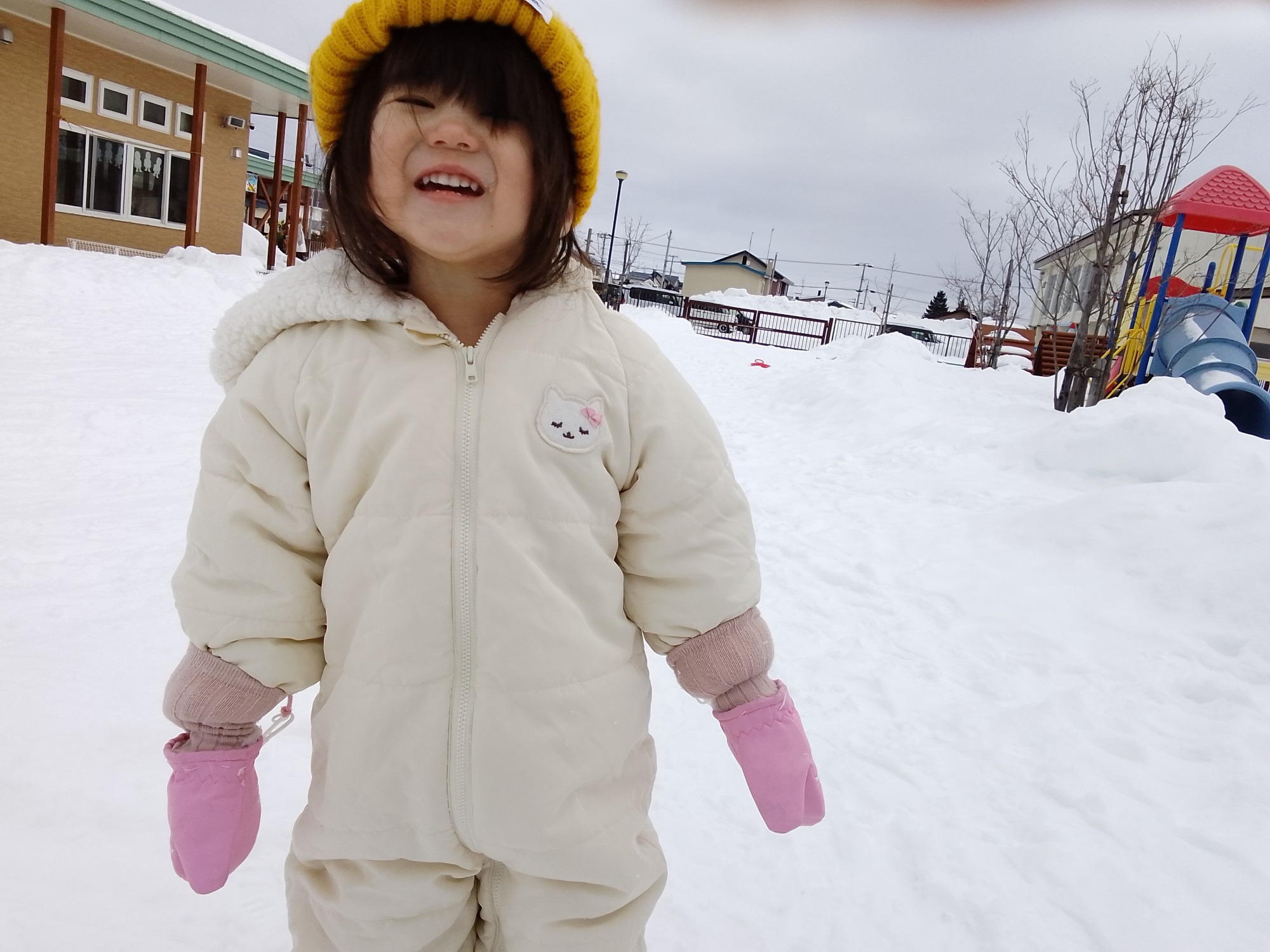 園庭には雪がたくさん積もり、雪山を一生懸命登ってはお尻で滑って、ほぼ毎日のように雪遊びを楽しんでいます⛄