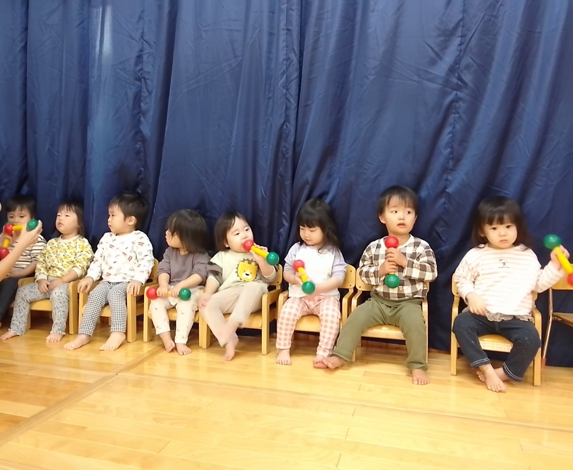 新年度を迎えて早いもので1ヶ月が経ちました。進級児6名・新入園児2名、計8名でひよこ組がスタートしました🐤新しい環境にも少しずつ慣れてきて、毎日元気いっぱい!笑顔いっぱい!のひよこさん☺手遊びや絵本、運動遊びが大好きで言葉や動作を真似っこしているみんなです♡リズム遊びの活動もたくさん行なっています✨とっても上手になってきていて、動き一つ一つが一生懸命でとても可愛いんですよ~♡とにかく元気いっぱいなひよこさんなので、これから暖かくなってきたお外でたくさん遊びたいと思います♪