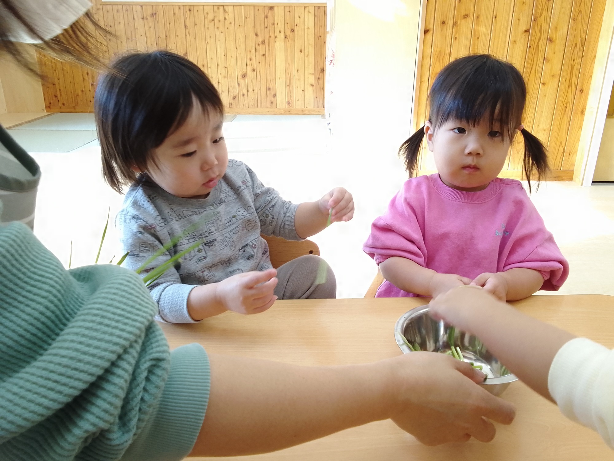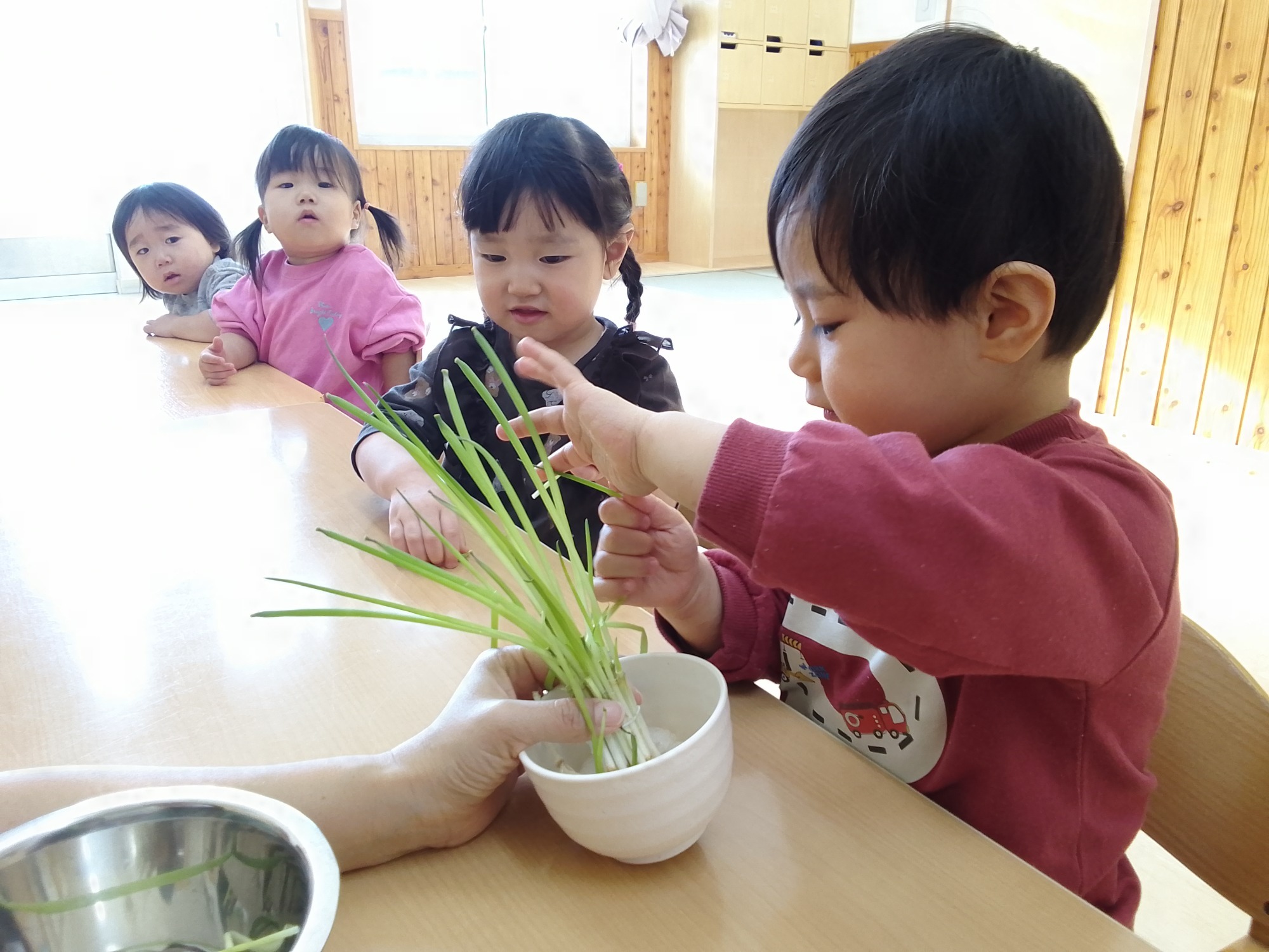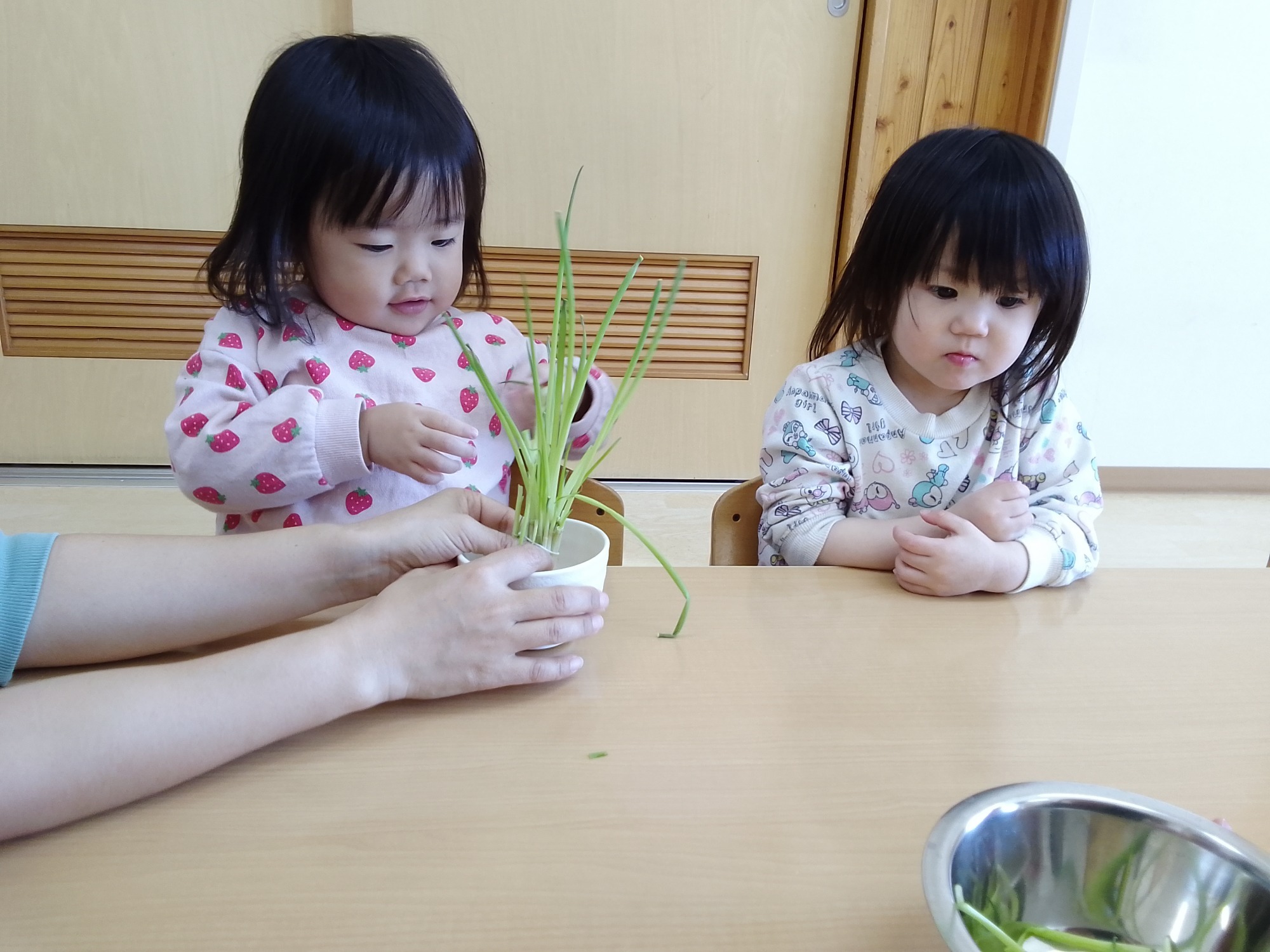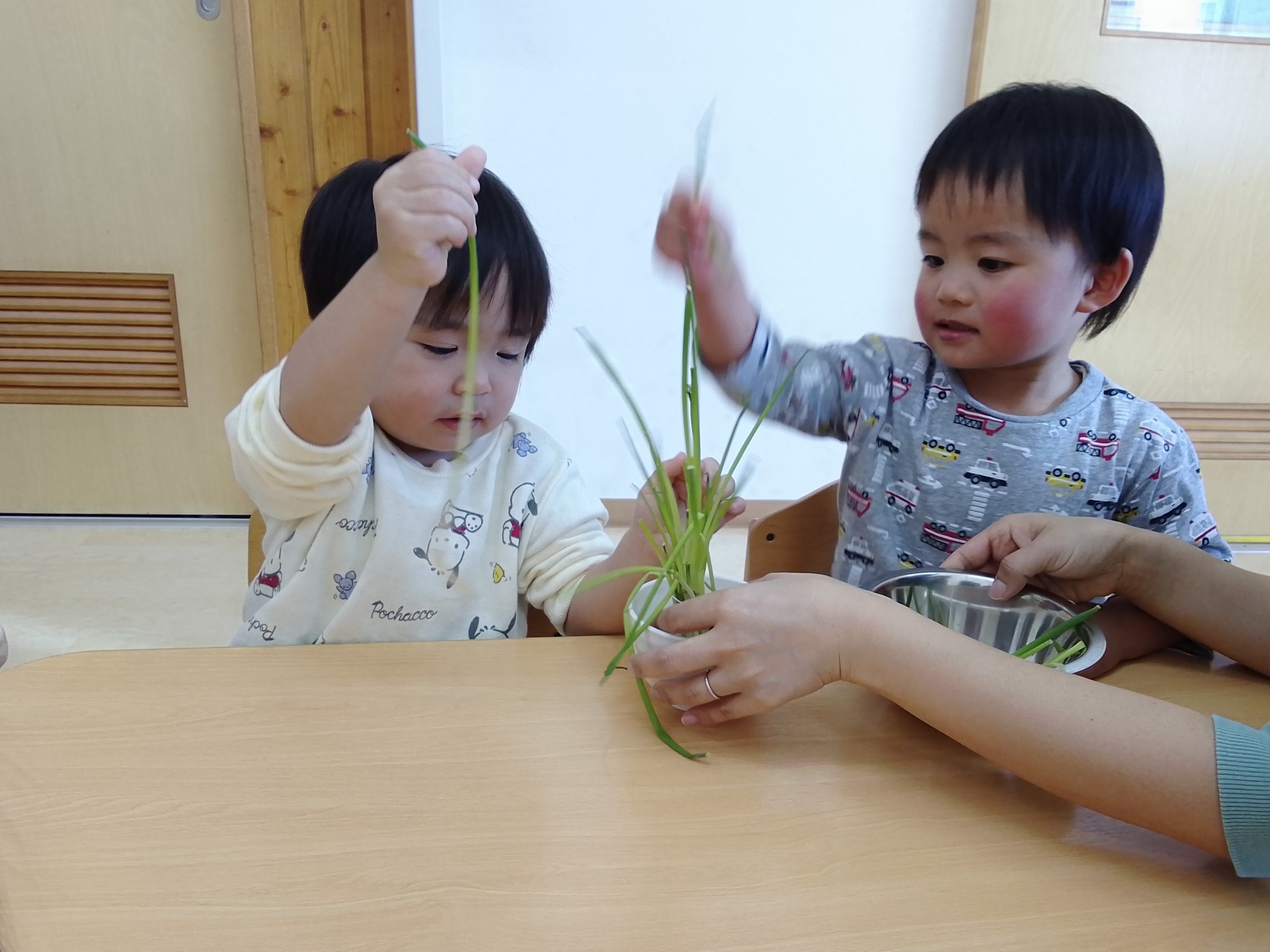 お部屋ではねぎの収穫をしました!その日の給食のスープに入っていて大喜びのみんなでした☺
