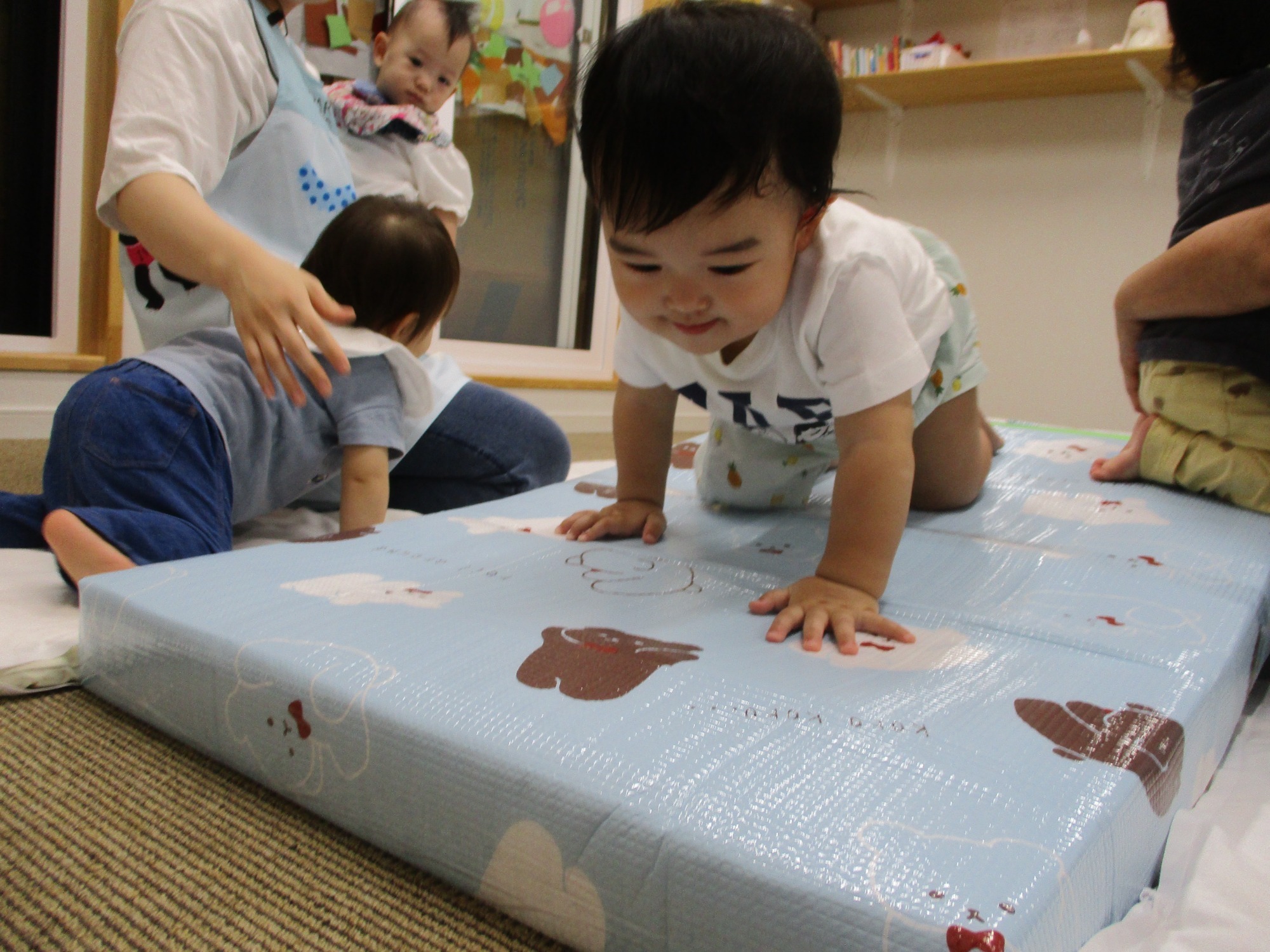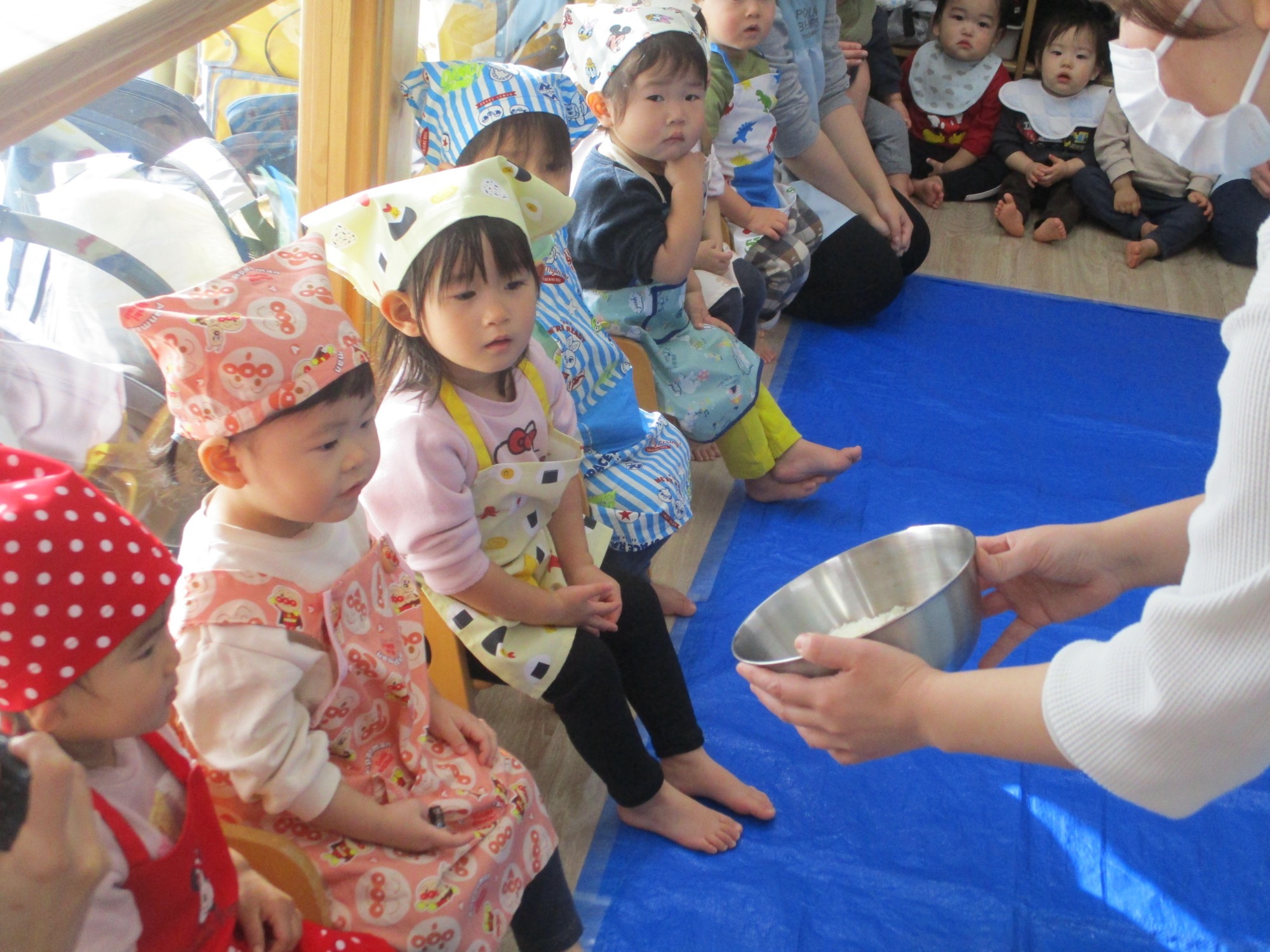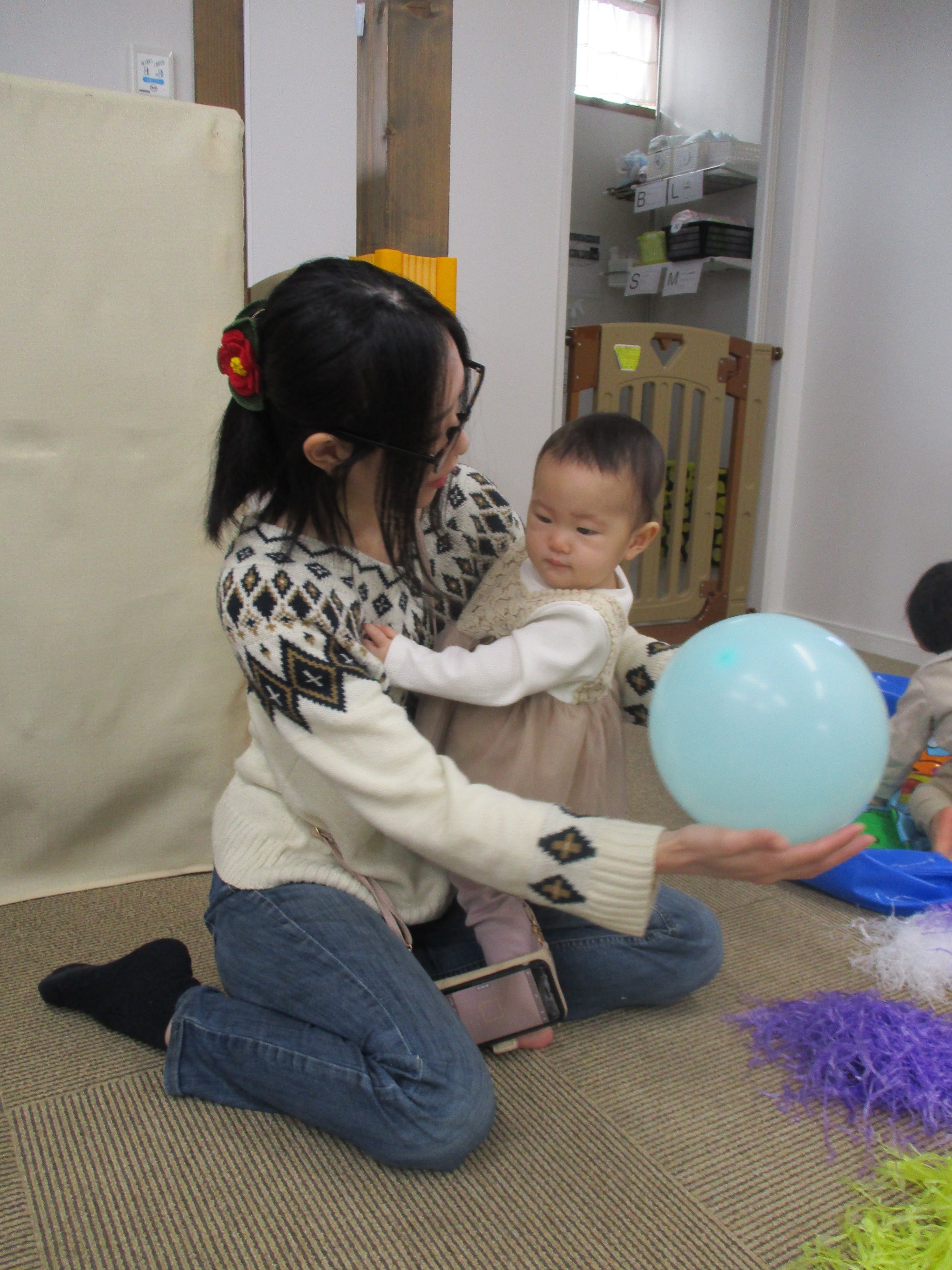 4月は4名の新しいお友だちをお迎えしました。進級したお友だちも含め、みんな新しい環境に少しずつ慣れ、好きなおもちゃを手に取り保育者やお友だちと関わりながら、楽しく遊ぶ姿が見られるようになりました。りす組さんは自分から玩具を目指してずりばいをしたり、音が鳴るおもちゃを振ってカラカラと鳴らしながら笑顔を見せてくれたりと、とても穏やかに過ごしていました。こあら組さんは昨年2階にはなかった新しい玩具に興味を示し遊び方を色々と模索したり、暖かかった日も多かったので裏の公園まで手を繋ぎ歩いて行ったりして楽しんでいました。うさぎ組さんは粘土・折り紙・ひも通しなどで遊んだり、ボール・風船遊びやわらべ歌などで沢山身体を動かしたりして楽しんでいました。また、りす組やこあら組のお友だちにも興味津々で、頭をなでなでしたり優しく声を掛けたりしてくれていましたよ。