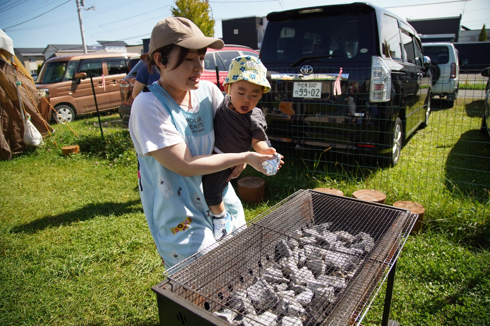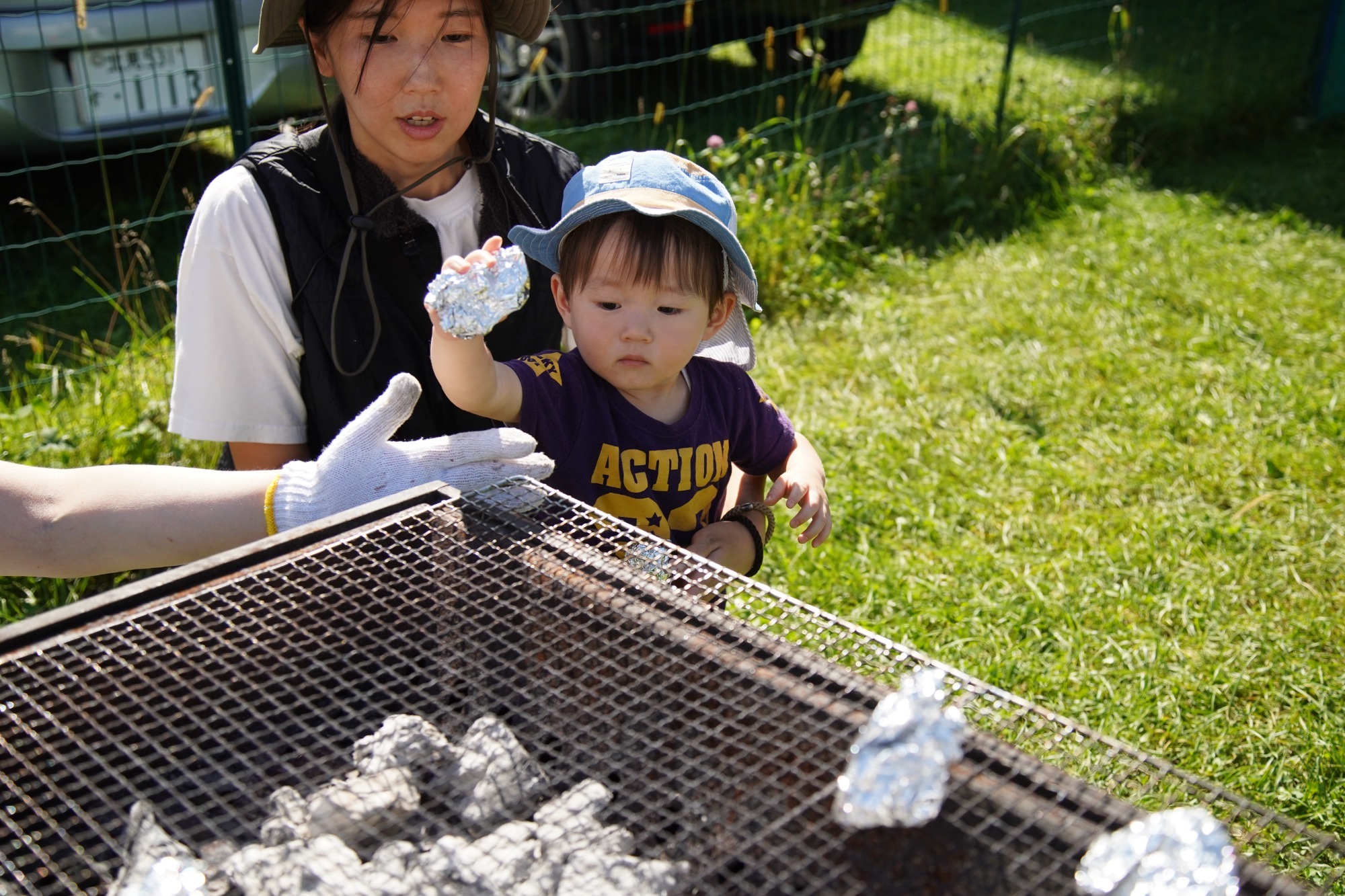 収穫祭では、園の畑でみんなが大切に育てたかぼちゃとズッキーニを収穫し、かぼちゃ焼きやかぼちゃ団子汁とズッキーニのチーズ焼きを作りました。りす組はかぼちゃをこねこねし、こあら組とうさぎ組はズッキーニにチーズをまぶしたり、かぼちゃをアルミホイルに包んだりしてくれました。その後、みんなで炭火の網の上に置いて焼き、美味しくいただきましたよ!