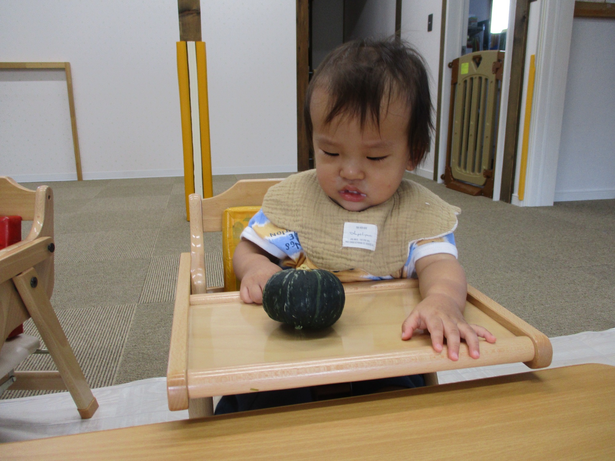 11月はお散歩へ出かけて落ち葉や木の実に触れたり、公園の遊具で身体を動かしながら遊んだりしました。色が白くなった猫じゃらしなどお気に入りのものを手にぎゅっと握ったり、ジャンバーのポケットにしまったりしながら園に持ち帰り、おうちに持って帰ることを楽しみにしている姿が多く見られました。目をキラキラさせながら『いいものみつけたよ!』という表情をしていた子ども達。そんな気持ちに寄り添って、一緒に喜びや嬉しさを感じていきたいですね。