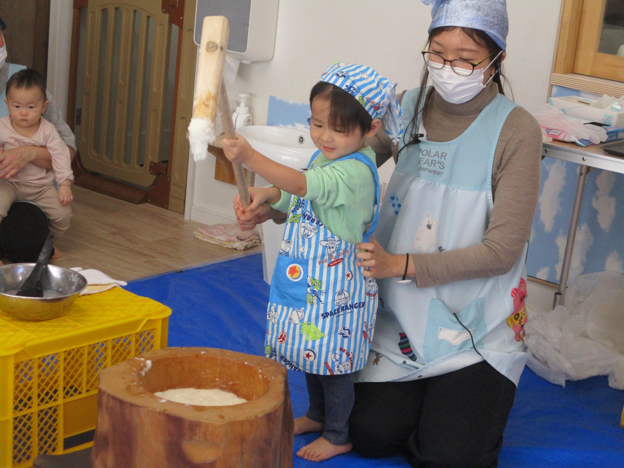 12月はもちつきやクリスマスの行事があり、子ども達はとっても楽しみにしています!保育者も子ども達と一緒にワクワクしながら過ごしていきたいと思います♪