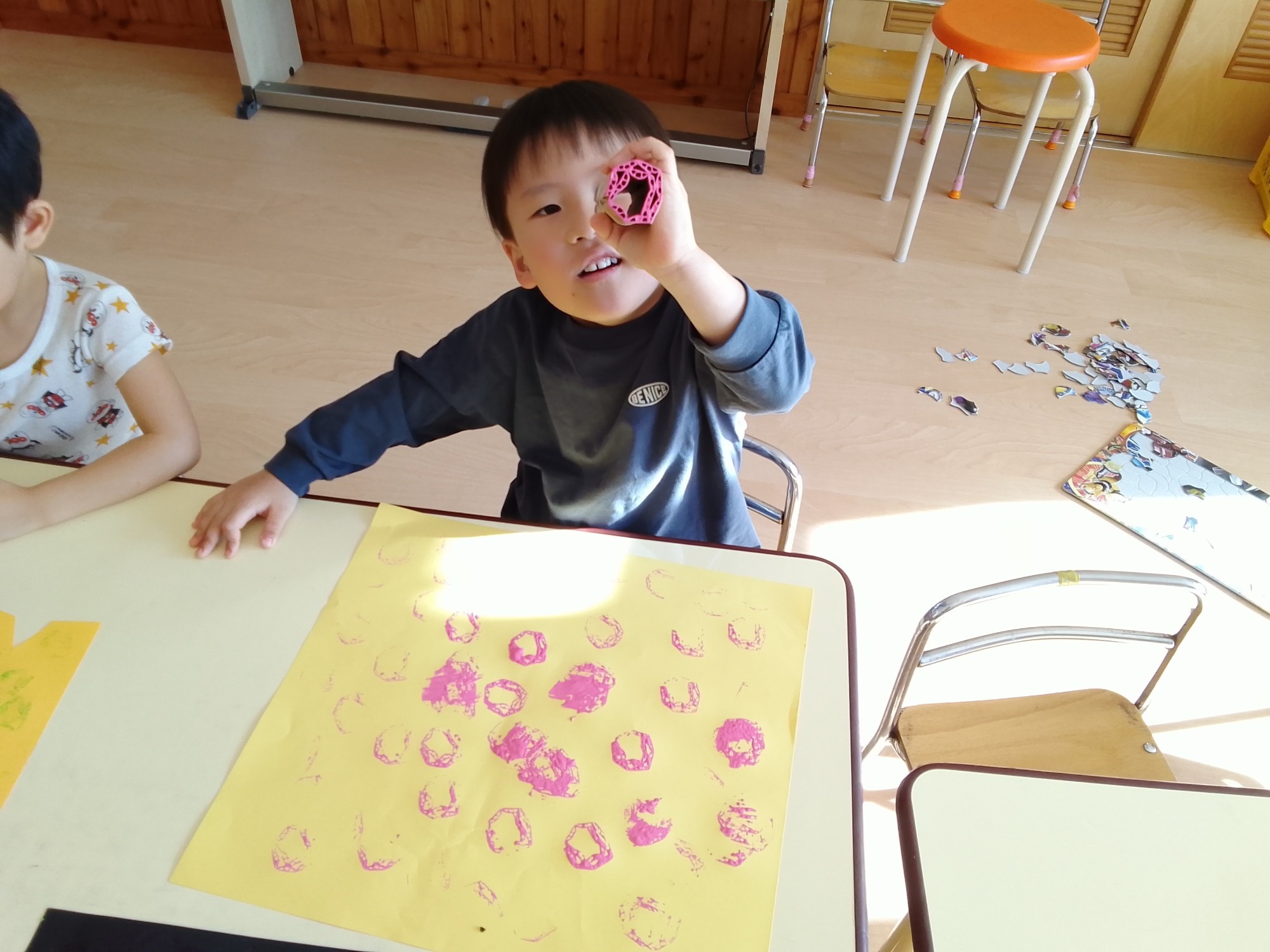 レースペーパーを外すと「きれーい✧」と拍手をする姿だったり、友だちの作品をみて褒め合ったりしていました☆