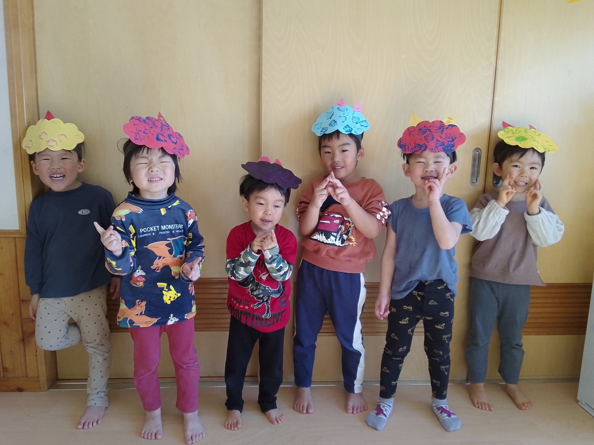 2月は節分がありました👹節分の日にはホールで自分の中にいる「泣き虫鬼」「いやいや鬼」などの鬼を退治しよう!!とのことで鬼に因んだゲームをしました♪