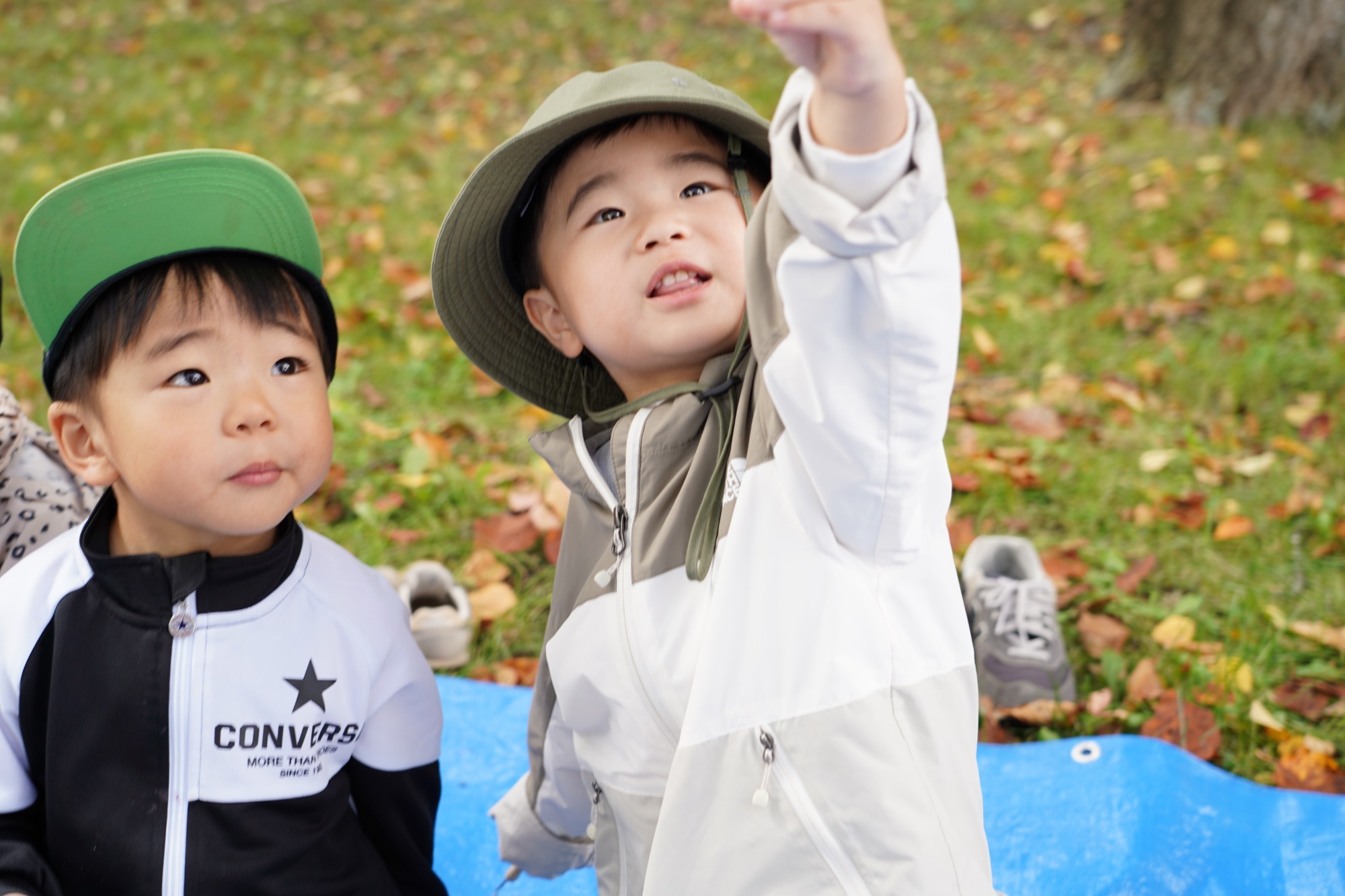 11月は園外保育があり、バスに乗って野付牛公園へ行ってきました。公園には落ち葉がたくさんあり、落ち葉の下にはどんぐりや松ぼっくりがかくれんぼしていました。リスもいたのですが子どもたちが見た時には隠れてしまい、残念ながら見る事ができませんでした。でも松の木のトンネルの中をくぐったりして楽しく遊んできました。