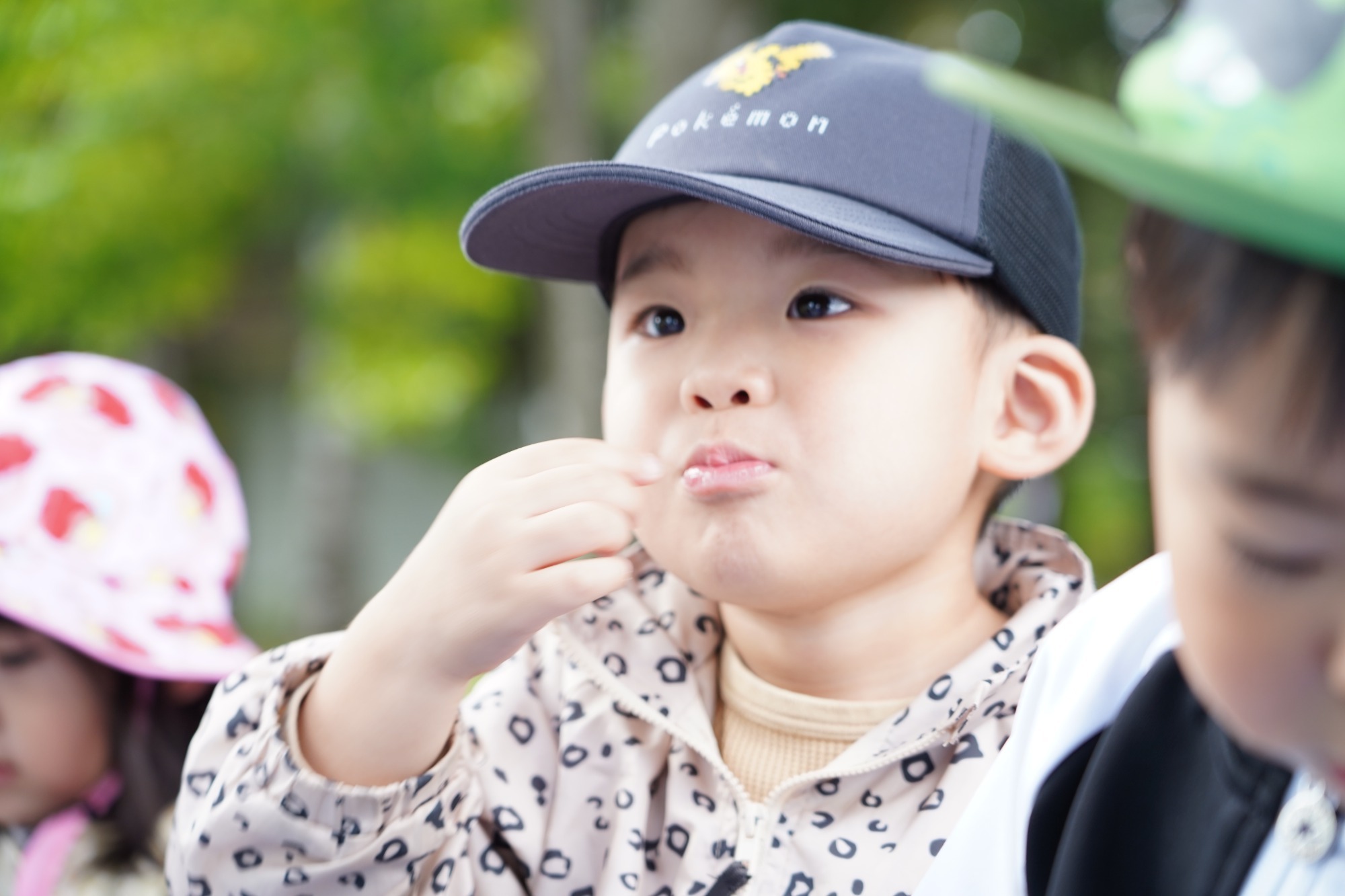 秋と言えば”食欲の秋”という言葉があるように、子どもたちの今のお気に入りの歌も”やきいもグーチーパー”の手遊びで、歌を歌いながら食べる真似をして楽しんでいます。
