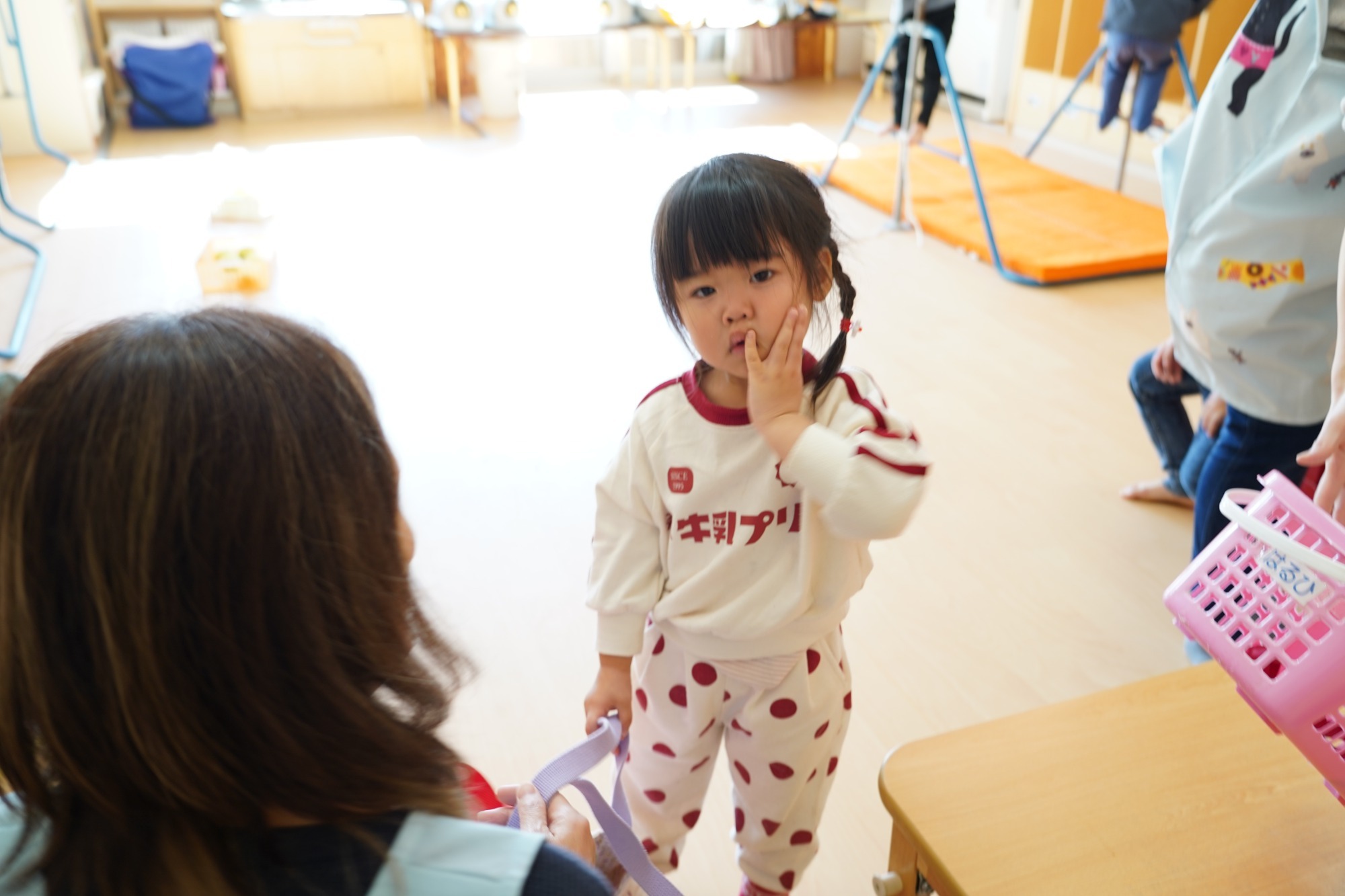 子ども達は進級でお部屋の配置や玩具が変わった事に興味津々・ウキウキワクワク
