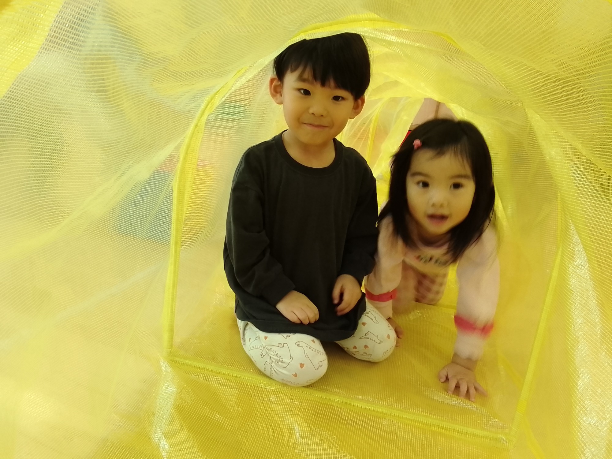 初めての場所で最初は不安そうでしたが直ぐに興味のある遊びを一緒に見つけ遊ぶ事が出来ました。