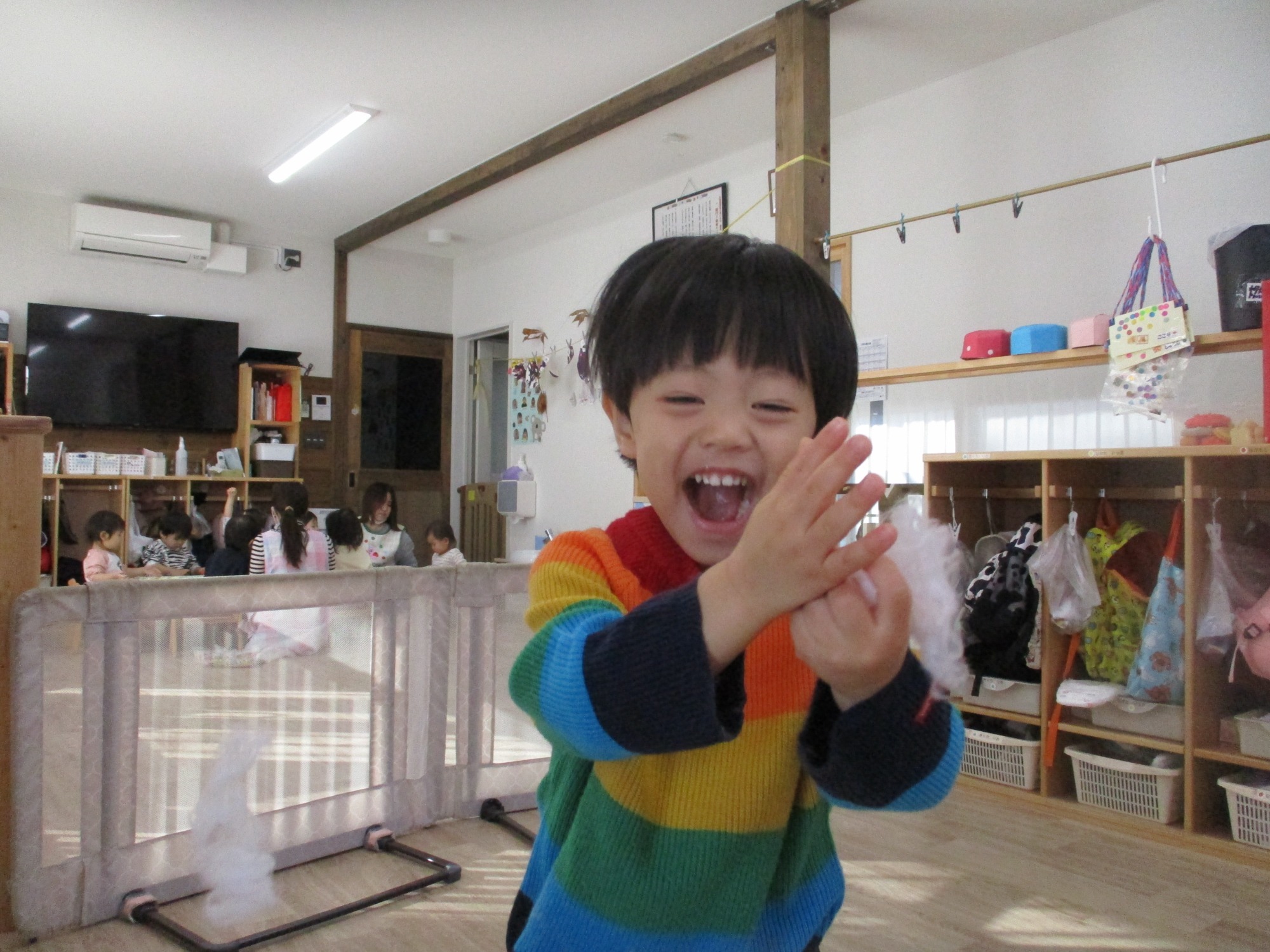 誰かが始めるとまた誰かが真似をして楽しめる。そんな姿が可愛い子ども達です(^^♪