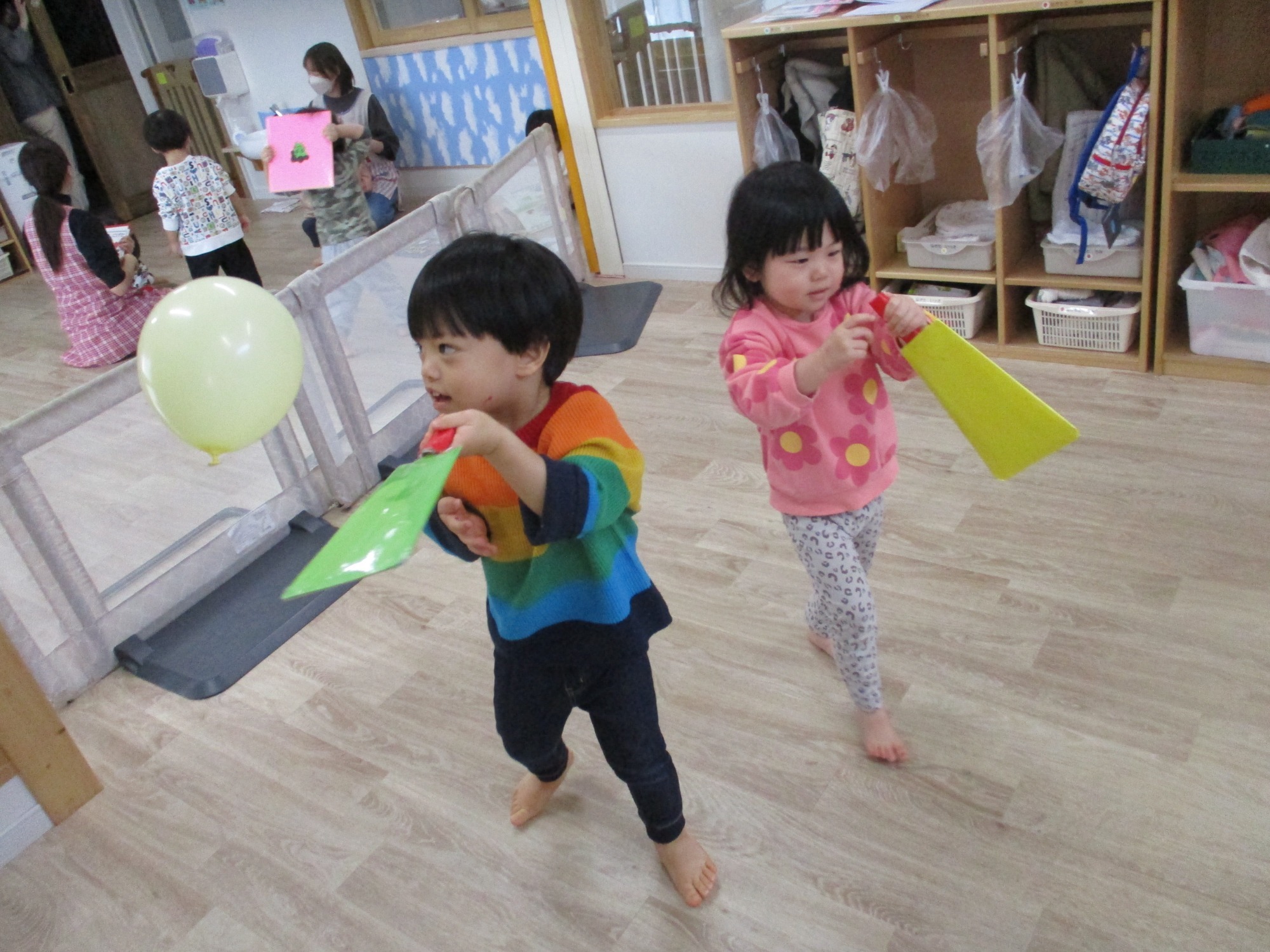 風船遊びをした時には、玉ころがしの様にコロコロと転がして楽しんでいましたよ。