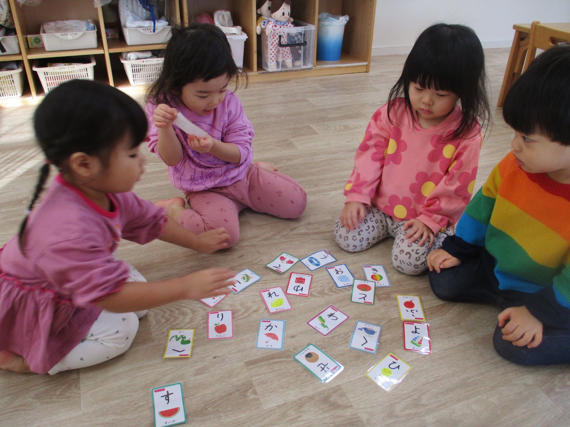 初めて遊んでみた〝絵合わせカード〟お友だちと一緒に探して合わせたり、1人ずつ探して見つけて喜んだりと、何度も繰り返し楽しめる遊びの1つになりましたよ。